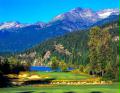 This visually striking hole offers a generous landing area. Large trees and Fitzsimmons Creek create distinctive hazards. The teeing area is a fantastic vantage point for watching float planes which dock just a few yards from our clubhouse. Deep bunkers protect the left hand side of this firm green.
